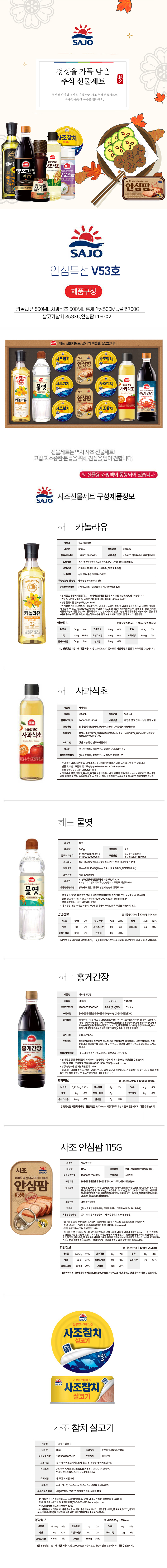 Ä«³î¶óÀ¯ 500ml x 1°³ + ¹°¿³ 700g x 1°³ + »ìÄÚ±âÂüÄ¡ 85g x 6°³ + ¾È½ÉÆÊ 115g x 2°³ + »ç°ú½ÄÃÊ 500ml x 1°³ + È«°Ô°£Àå 500ml x 1°³