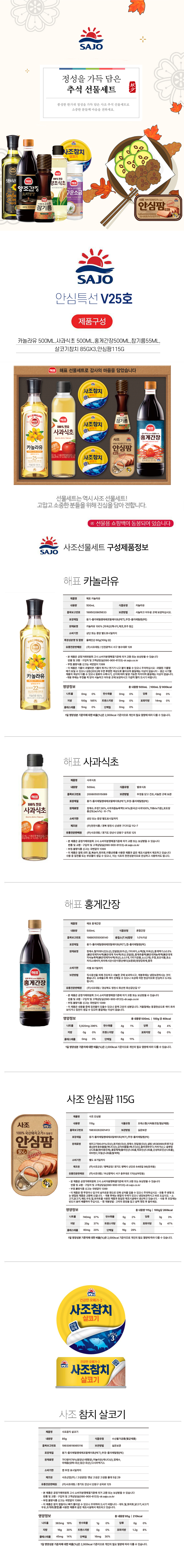 ±¸ ¼º Ä«³î¶óÀ¯500ml x 1°³ + »ç°ú½ÄÃÊ500ml x 1°³ + »ìÄÚ±âÂüÄ¡85g x 3°³ + ¾È½ÉÆÊ115g x 1 °³ + °í¼ÒÇÑÂü±â¸§55ml x 1°³ + È«°Ô°£Àå500ml x 1°³