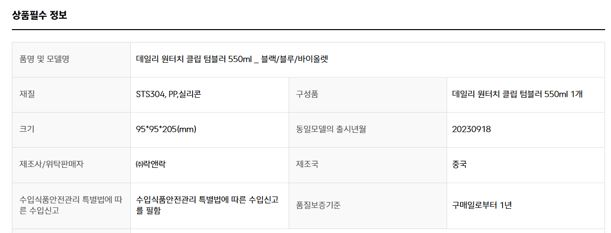 [¶ô¾Ø¶ô] ¿øÅÍÄ¡ Ŭ¸³ ÅÒºí·¯ 550ml 1P+±ÂÁîÄÉÀ̽º
