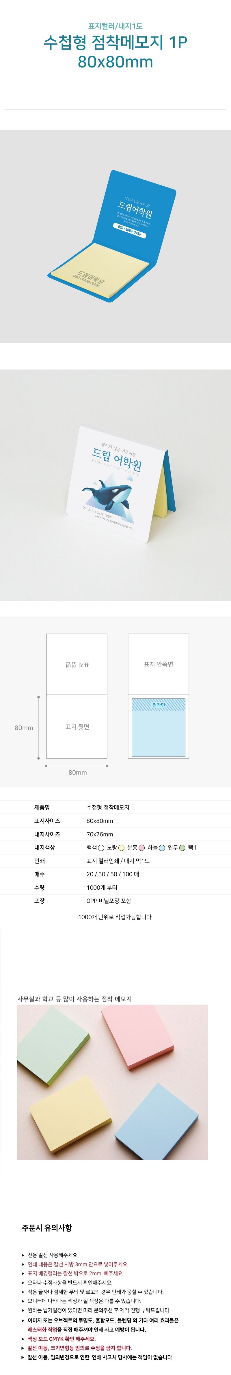 ¼öøÇü Á¡Âø¸Þ¸ðÁö 80*80mm 1P (20¸Å/30¸Å/50¸Å)